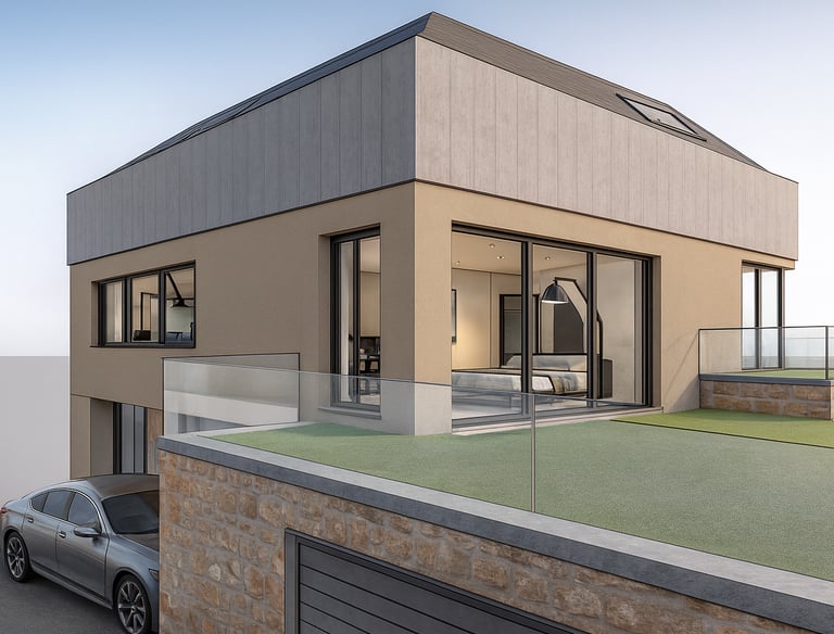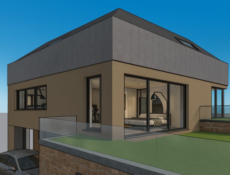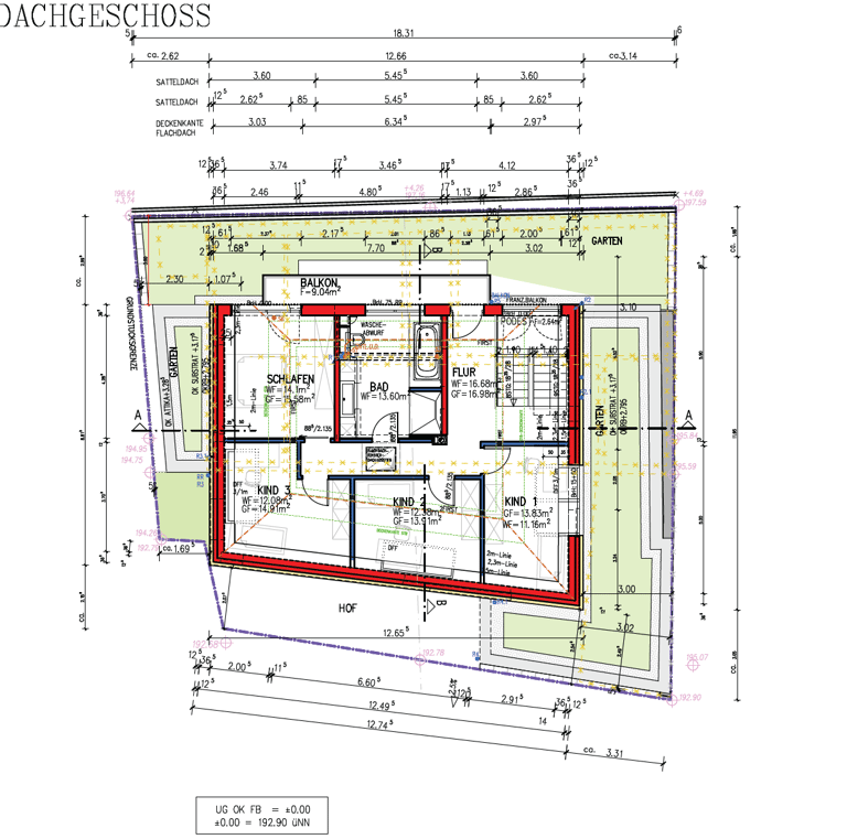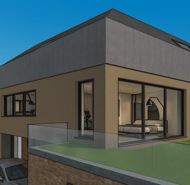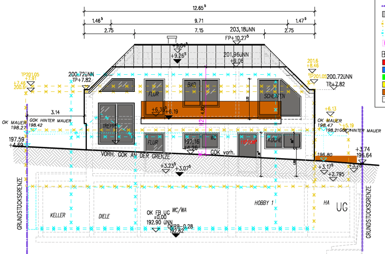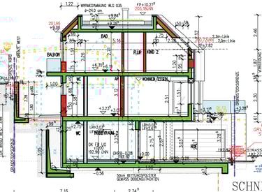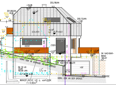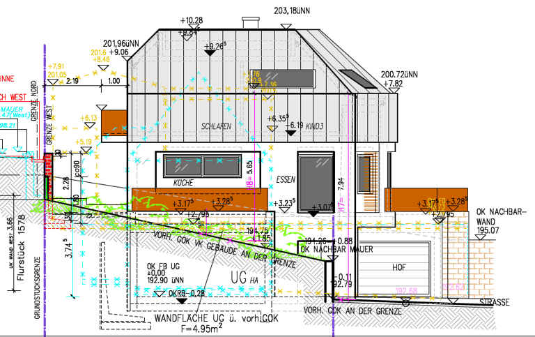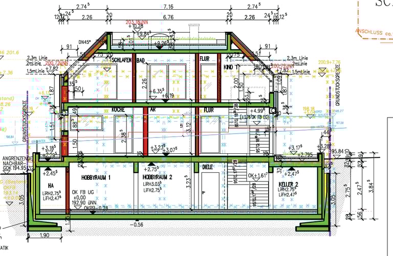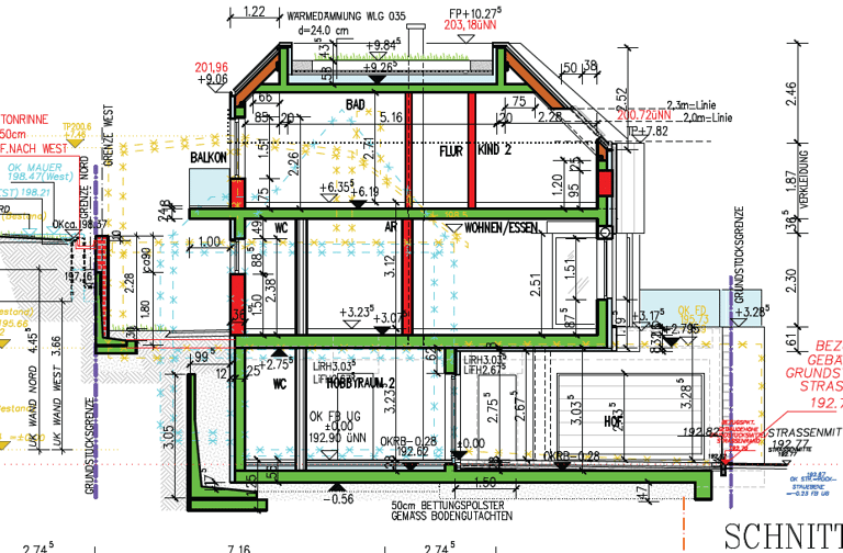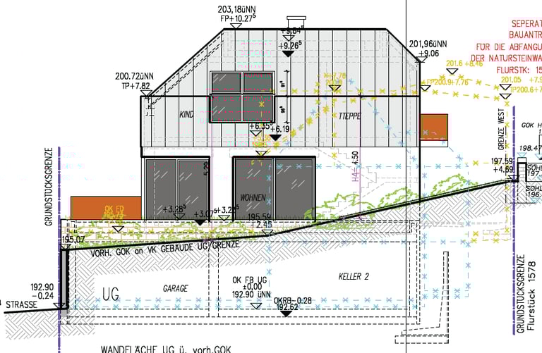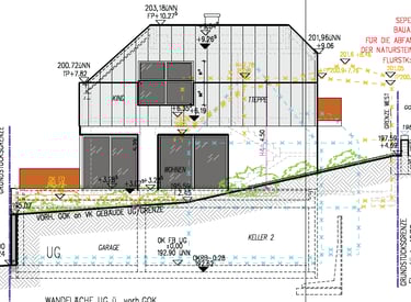Für das Einfamilienhaus liegen bereits detaillierte Ausführungspläne der Leistungsphase fünf sowie die komplette Statik vor. Die Planung nutzt die Hanglage optimal aus und schafft großzügige Wohnflächen, die perfekt für eine Familie mit Kindern geeignet sind.