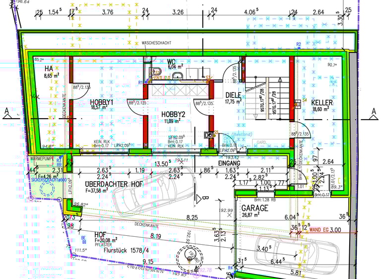 Das Untergeschoss umfasst funktionale Nutzräume sowie zwei großzügige Hobbyräume mit natürlichem Tageslicht. Zusätzlich sind ein Hausanschluss- und ein Technikraum vorgesehen.